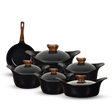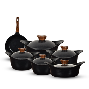 طقم حلل 11ق مدور نيوكلاين (4 حلل + صينية غطا بيركس + ووك) - أسود تم طلب المنتج بشكل مسبق وسيصل إليكم حال توفره