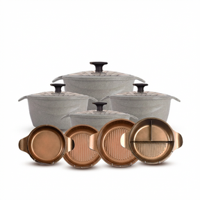 طقم حلل 12ق بطوط نيوكلاين (4 حلل + 4 غطاء متعدد +4 غطاء بيركس) - رمادي تم طلب المنتج بشكل مسبق وسيصل إليكم حال توفره