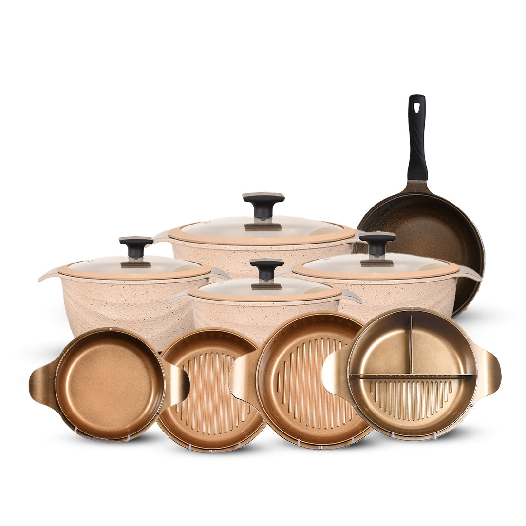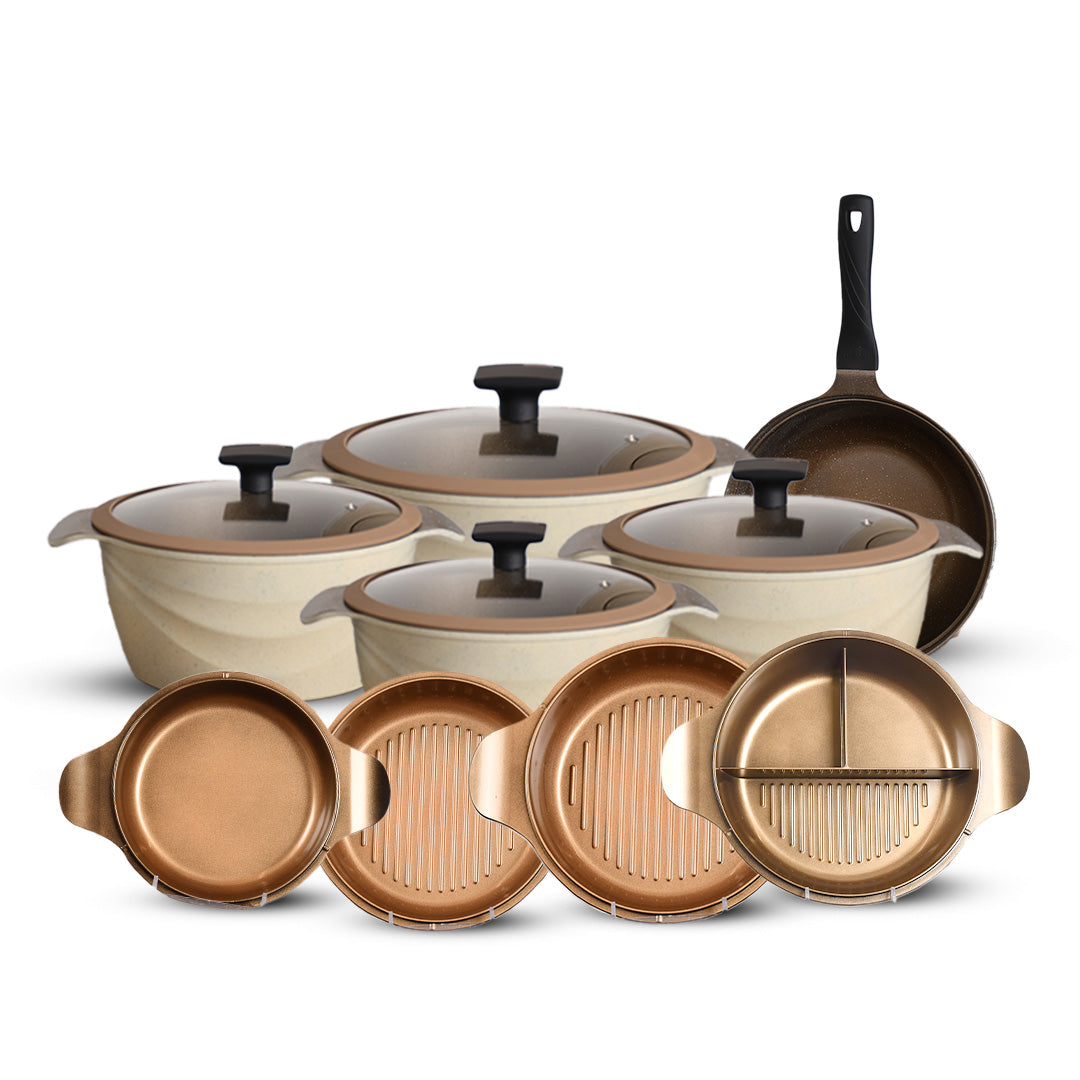 طقم حلل 13ق بطوط نيوكلاين (4 حلل + 4 غطاء متعدد +4 غطاء بيركس + ووك) - بيج تم طلب المنتج بشكل مسبق وسيصل إليكم حال توفره