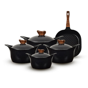 طقم حلل 9ق مدور نيوكلاين (4 حلل +جريل ) - أسود تم طلب المنتج بشكل مسبق وسيصل إليكم حال توفره