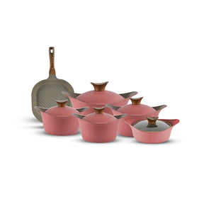 طقم نيوكلاين 11ق (4 حلل + جريل + صينية بغطاء بيركس) - pink تم طلب المنتج بشكل مسبق وسيصل إليكم حال توفره