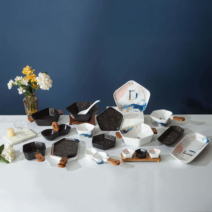 1 طاجن مستطيل تقديم كبير بيد خشب